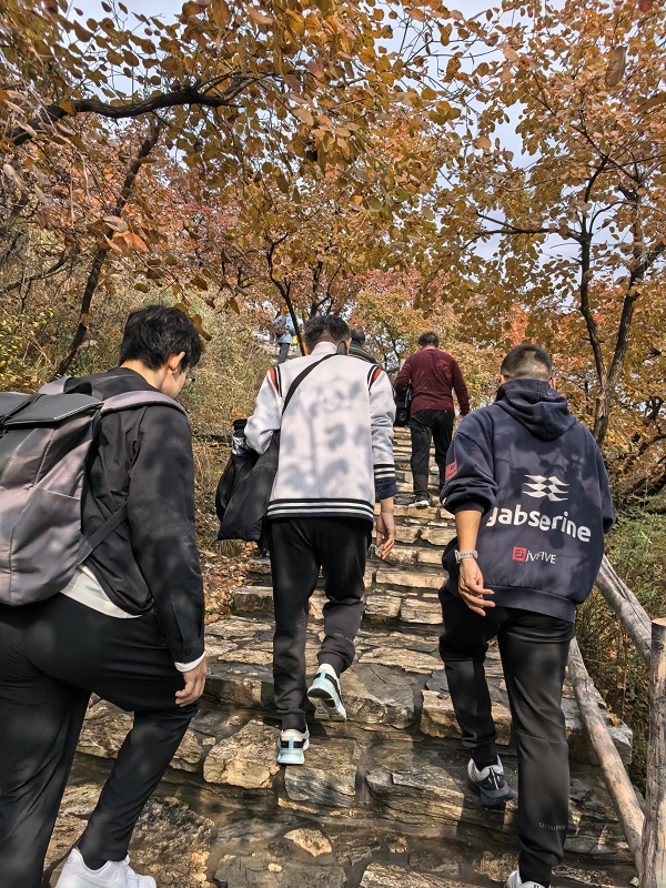 上午9点,活动在温暖的秋日阳光中正式拉开帷幕。大家迈着矫健的步伐,沿着坡峰岭景区步道阔步前行。职工们精神饱满,热情高涨,涌动的人群与漫山红叶的秋景相映成趣,形成了一道充满活力与朝气的流动风景线,途中,大家或驻足欣赏层林尽染的美景,或举起相机记录红叶盛景,欢声笑语回荡于山野之间,充分展现了顺义城发职工团结奋进、昂扬向上的精神风貌。公司工会沿途设置了补给点、配备医疗保障,提供了周到的后勤保障服务,确保了活动安全有序进行。经过两个多小时的健步行走,参与人员顺利抵达终点。