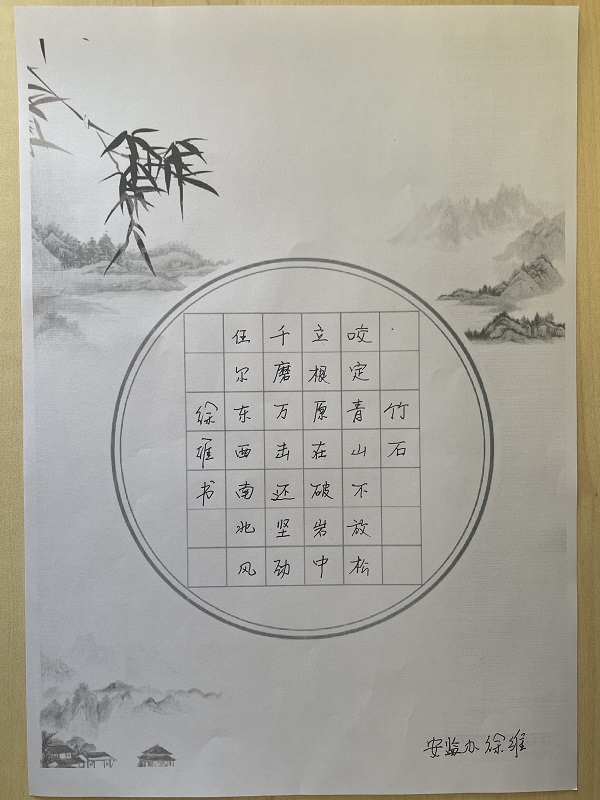 本次活动共收到书法、绘画等各类廉洁主题作品19件。作品主题鲜明、形式多样、寓意深刻,有剪出“莲花”“竹子”等象征元素的廉洁剪纸,生动形象地传递出“清廉自守”的深刻寓意。有讲述革命先烈、优秀家风故事的廉洁诗,以简洁的语言抒发对廉洁的坚守与追求。有讲述“将廉洁意识融入日常工作生活,时刻提醒干部职工保持清醒、守住底线”的主题壁纸等,这些作品,充分体现了广大干部职工对廉洁文化的深刻理解与积极践行。