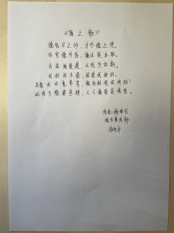 本次活动不仅是一次艺术创作的展示,更是一堂生动的廉洁教育课。通过参与创作,广大干部职工进一步增强了廉洁意识,筑牢了思想防线,营造了“人人讲廉洁、处处见廉洁”的良好氛围。